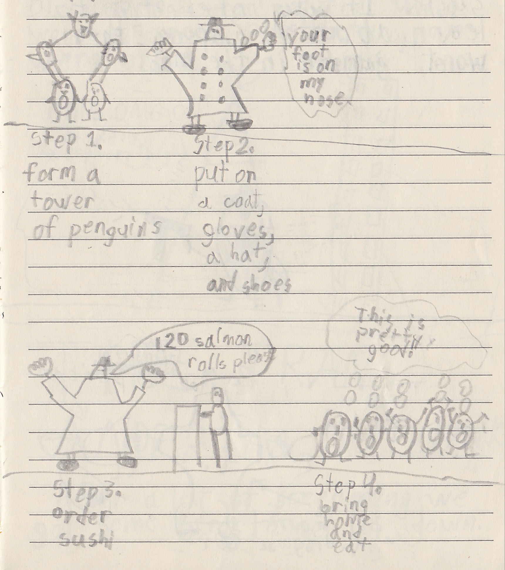 When we woke up the next day, we were hungry. Harold’s fridge was empty. Then Bill got an idea…