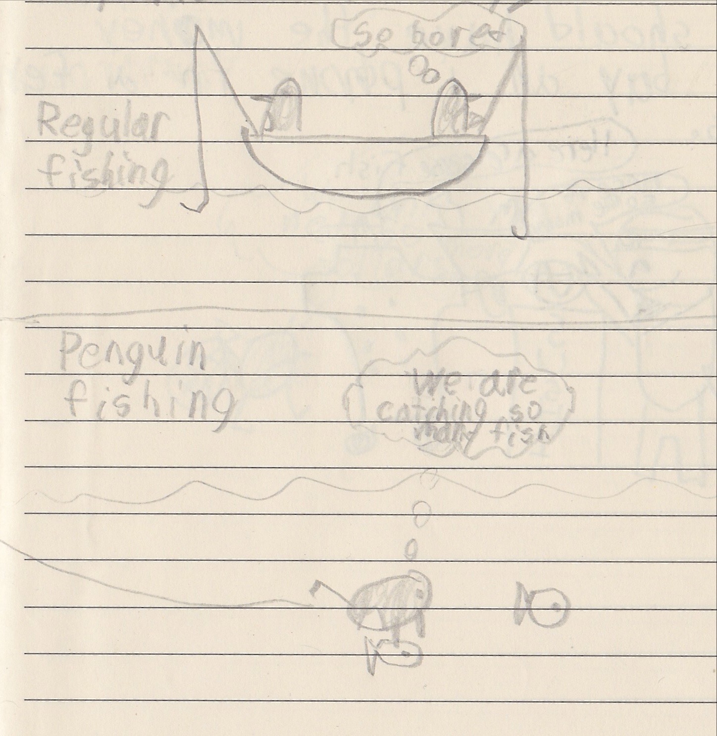 Today we went fishing. It was really boring waiting to catch fish. So we just jumped into the water and started grabbing fish. We caught way more that way.