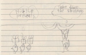 We realized that if we didn’t get Steve’s birthday decorations down fast, Harold would see.