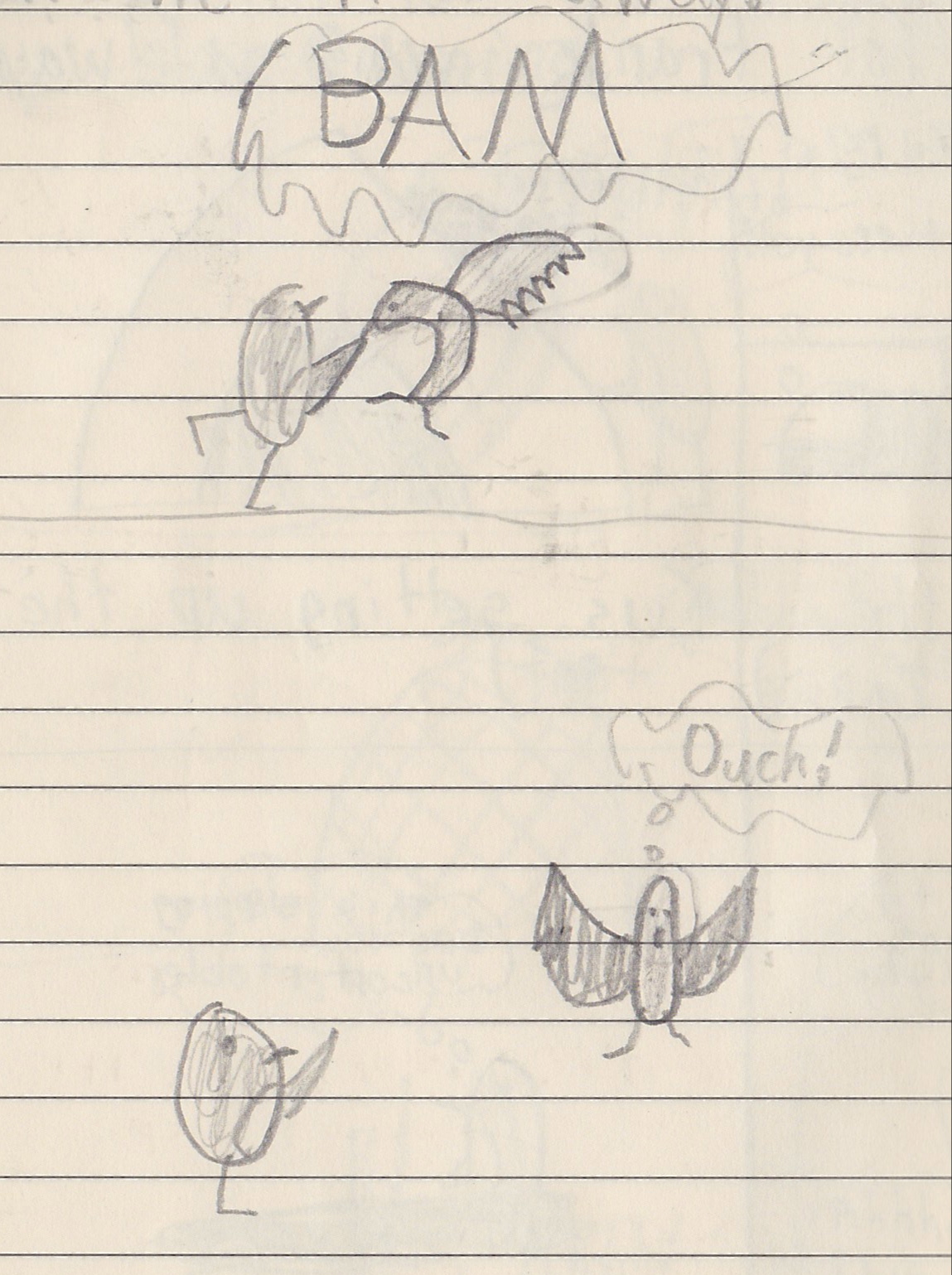 We were attacked by a hawk that tried to eat us. We punched him in the nose and he flew away.
