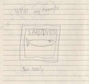 Last night we got back from our camping trip. We celebrated with a gourmet dinner of sardines.