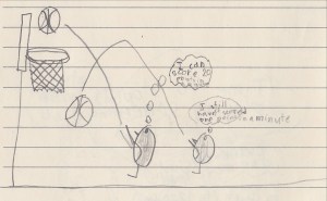 Today we got a basketball hoop. We played a game where you try to score as many points as you can in a minute.