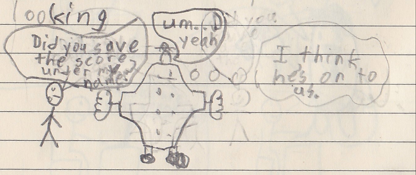 We went to the arcade today. My favorite part was when we had a few tokens left to play games, and we noticed that there were two kids who got really far in a game, but they were out of tokens and couldn’t keep playing the game. They said we could beat the rest of the game as long as we saved the game score under their names. We beat the game and saved the score under our names while they were not looking.