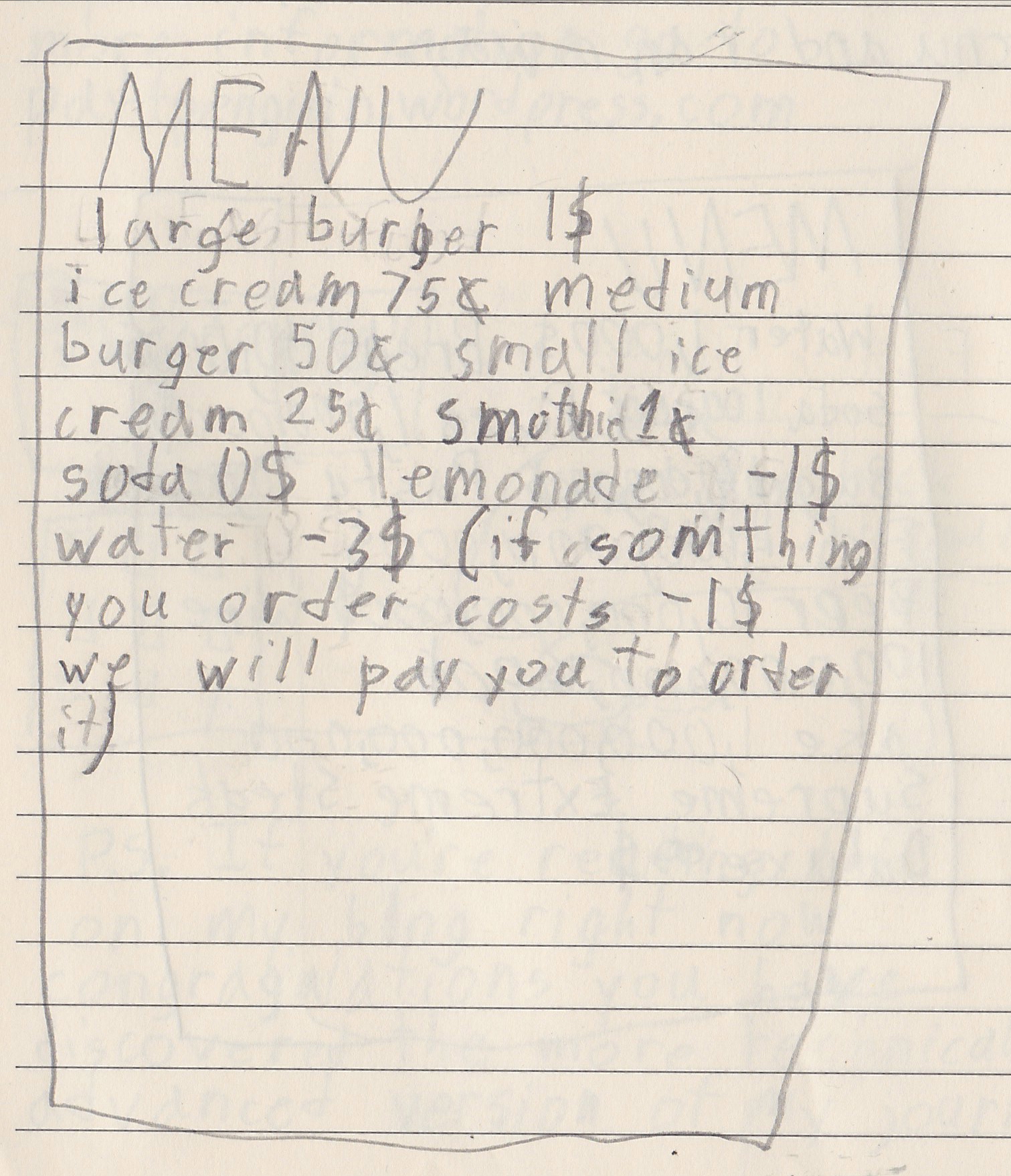 Today we went to get fast food. It was a lot cheaper than the fancy restaurant.