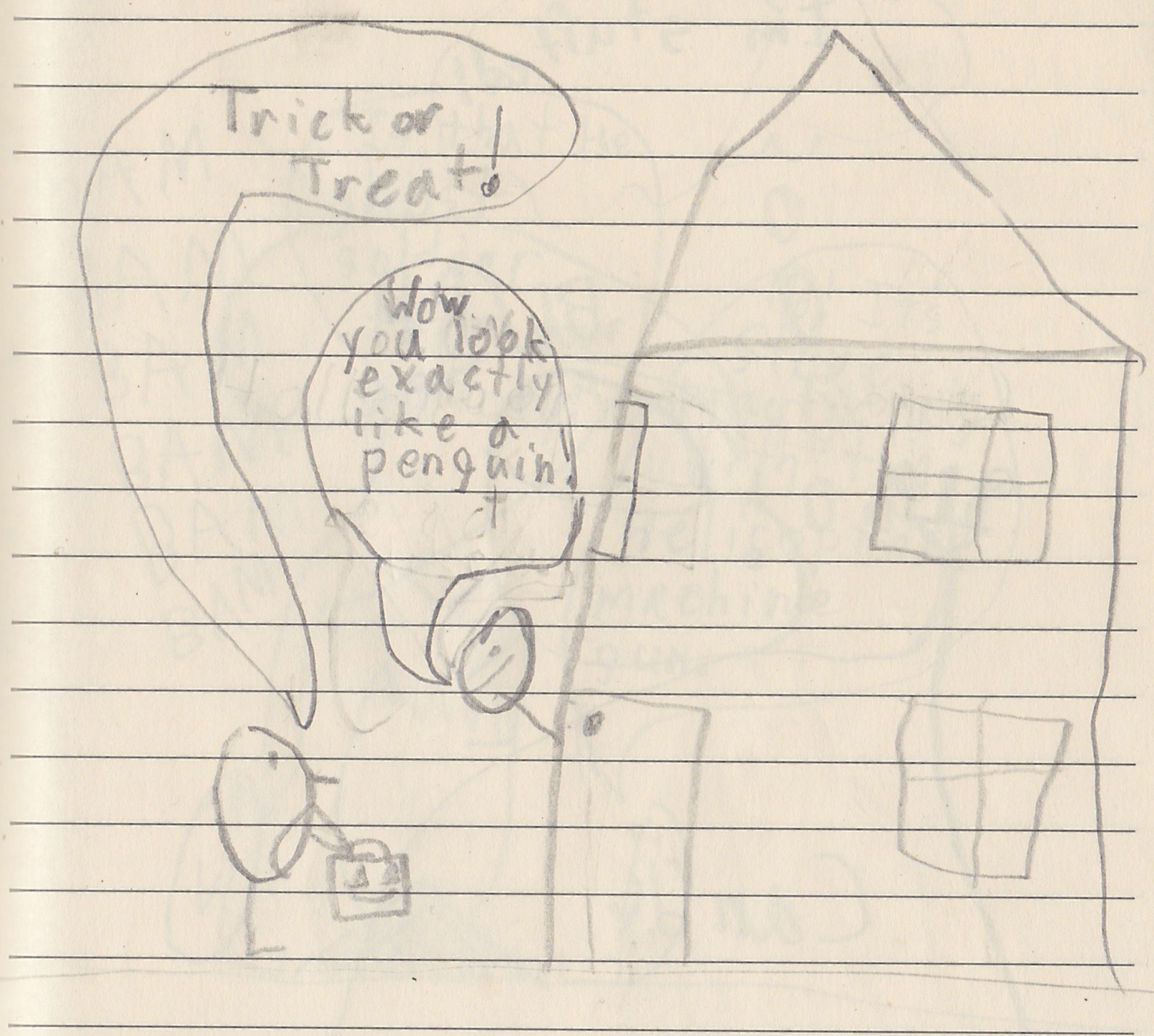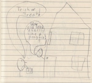 We went trick-or-treating tonight. We dressed as ourselves, and everyone complimented our costumes.