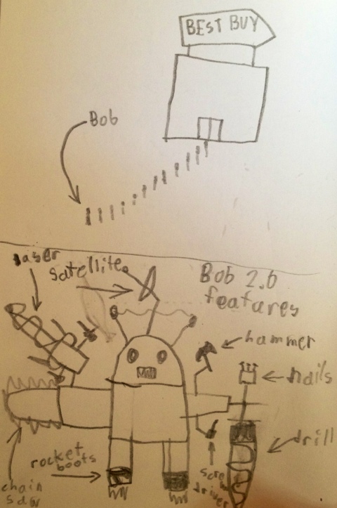 Robo Bob was really excited because his 2.0 upgrades came out. We thought it was great too. But when we went to Best Buy, there was a long line of robots also waiting to get upgraded.