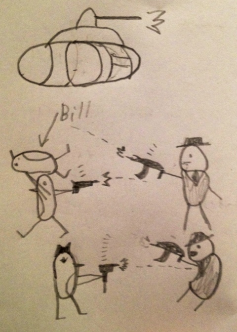 Attack! We broke into the Mafia’s lair. There was a long battle, but we won in the end and got Bill back.