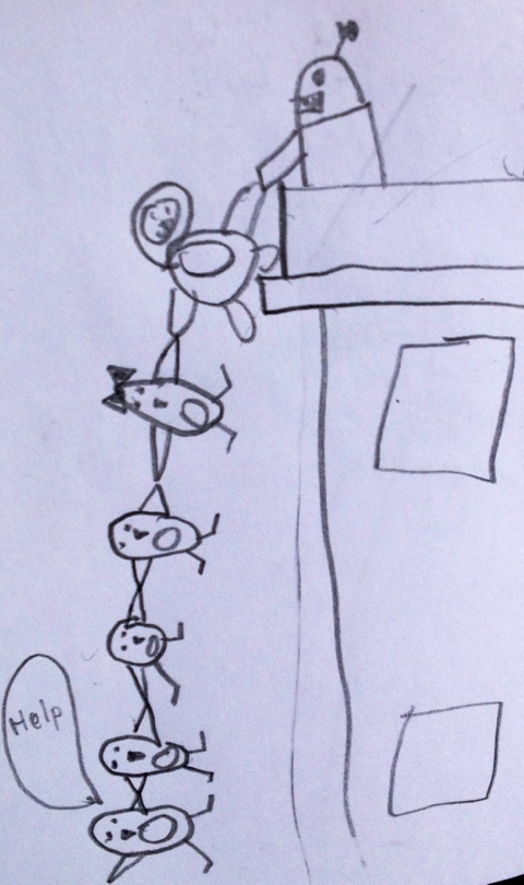 We went to the top of the Empire State Building. Frank fell off, but we saved him.