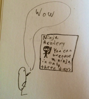 Today I learned about a ninja academy. I decided to go so I could learn how to defend myself.