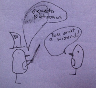 We went to the Harry Potter film sets. Frank bought a magic wand at the gift shop, and kept trying to cast spells.
