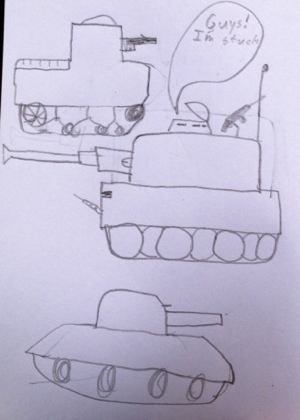 We went to a tank museum. Steve climbed to the top of a tank and then hopped inside and got stuck. After we got him out of the tank, it was really fun.