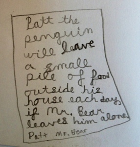 We made an agreement with the bear, saying that we would feed him every day if he didn’t annoy us.