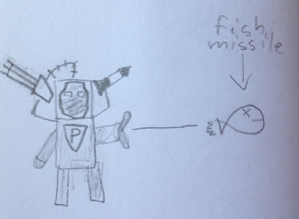 We got an idea for defeating the sandwich from the Iron Man movie. We built an Iron Pattman Suit.