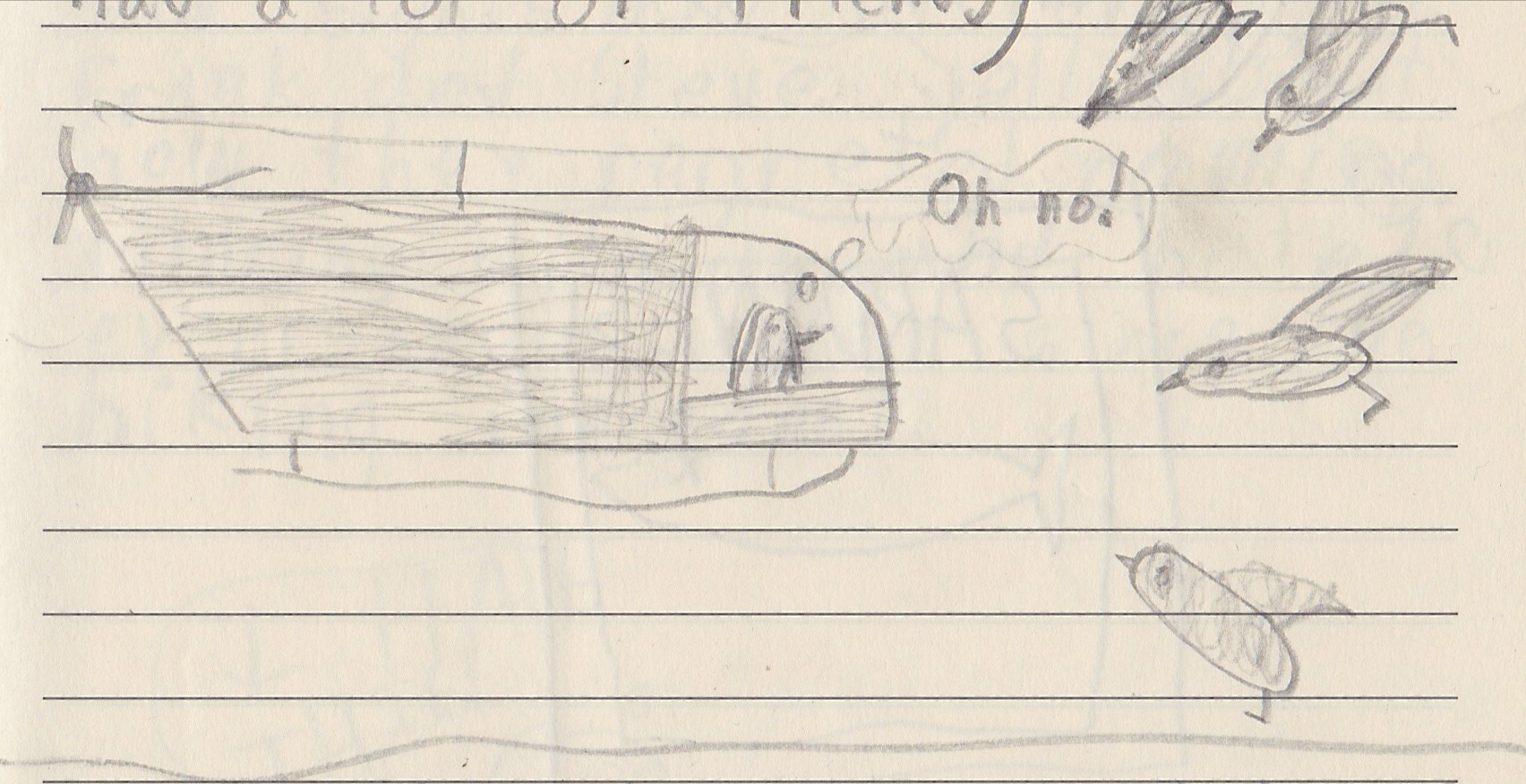 Today we packed our stuff from the camping trip. Then we got into our helicopter, and we were attacked by more hawks (the other hawk had a lot of friends).